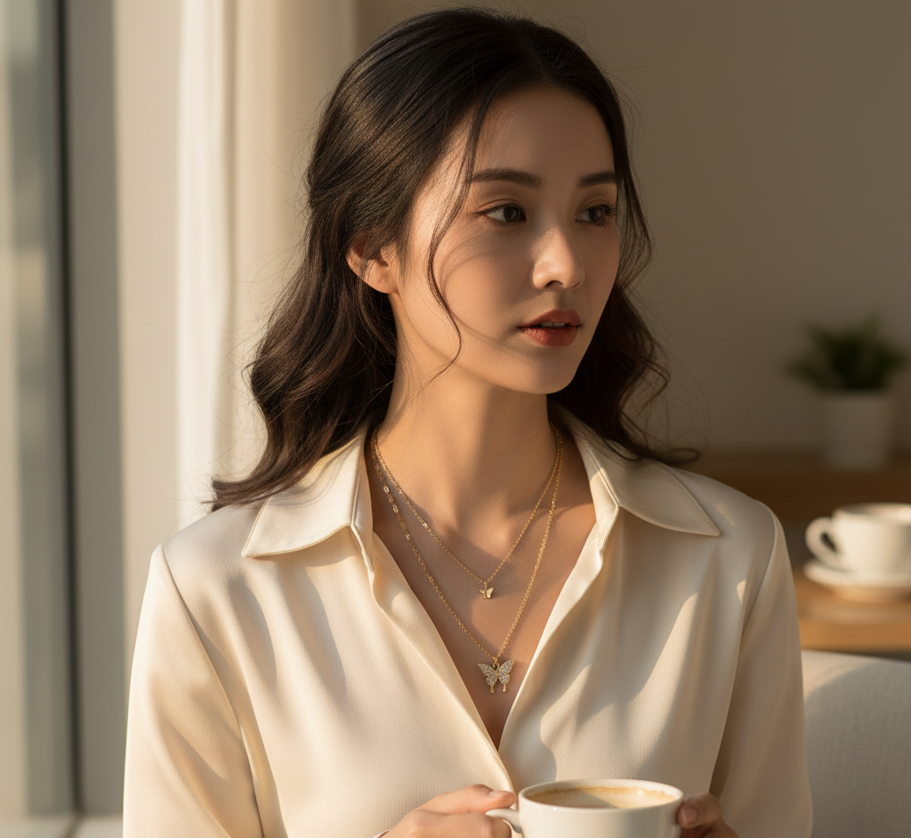 - Zircon Butterfly Pendant – Sparkling zircon stones add a touch of sophistication and shimmer.